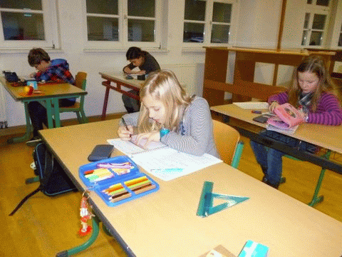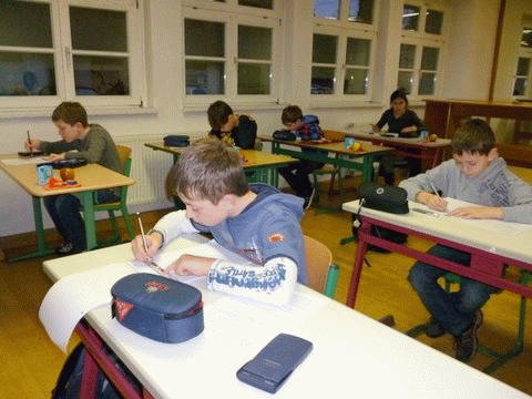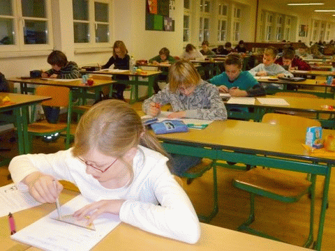 Unsere jungen Mathematiker bei der Lösung der Klausuraufgaben der 1. Stufe:
