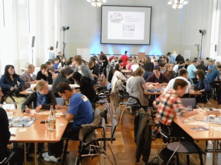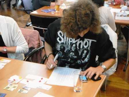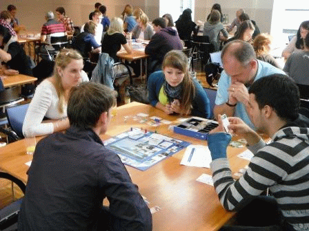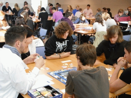 Kurz nach dem Eintreffen ging es dann auch schon los. Jeder saß an einem Tisch. Dazu kamen 4 bis 5 weitere Mitspieler aus ganz Deutschland. Nach einem kurzen Kennennlernen begann die neunzigminütige Spielphase.