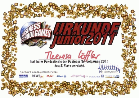 Am 22. September 2011 fuhren Nathalie Schramm, Maximilian Richter, Philipp Paul, Theresa Löffler, Nicole Thumstädter und Julia Forner nach Frankfurt a.M. zum Bundesfinale „Business Master Schoolgames 2011“.