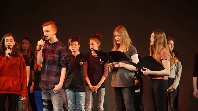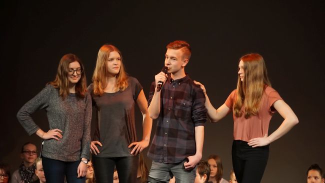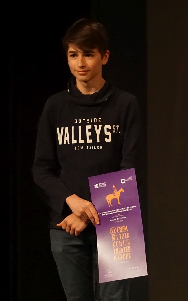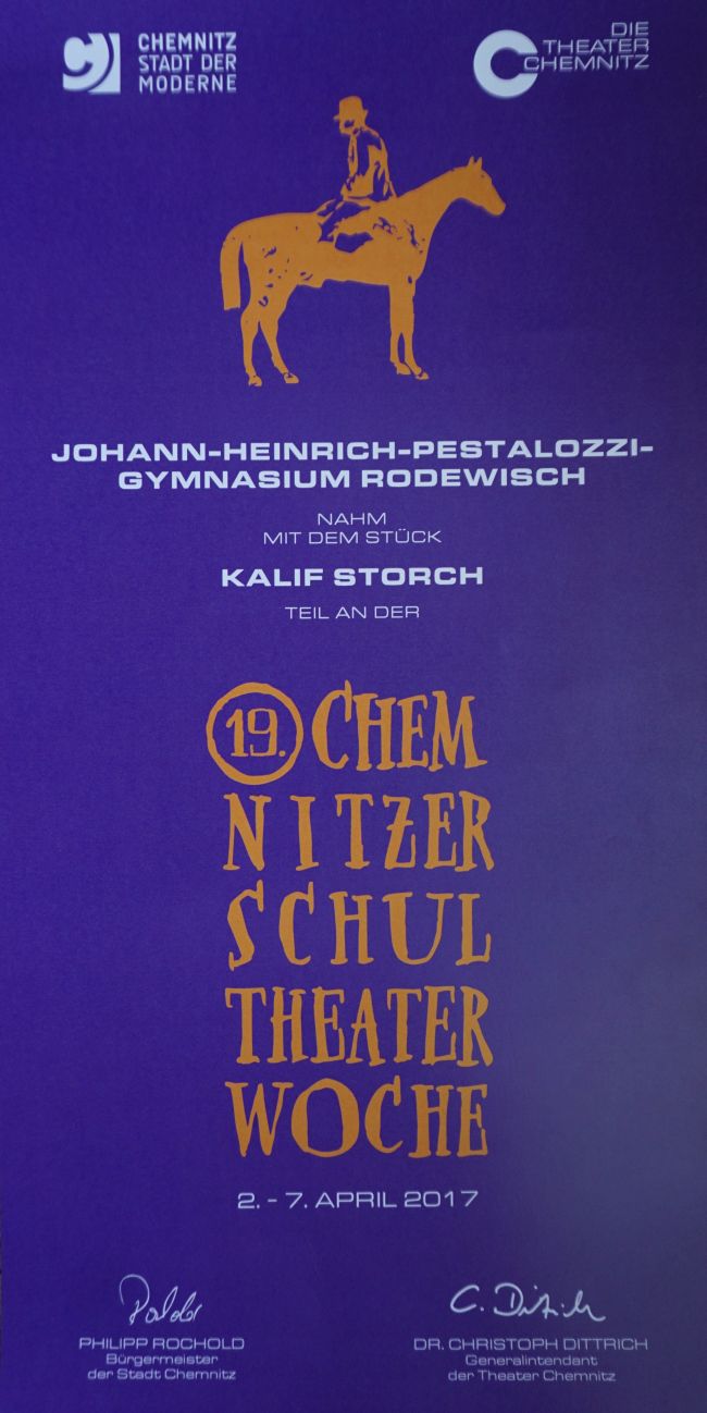 Unsere Märchentheatergruppe, zu der die Schüler des künstlerischen Profils Klasse 9, der Chor sowie die Kindergartenkinder aus dem „Schwalbennest“ und der „Flohkiste“ gehören, hatte im Januar die Chemnitzer Jury überzeugt und durfte am 6. April auf den Brettern spielen, die die Welt bedeuten.
