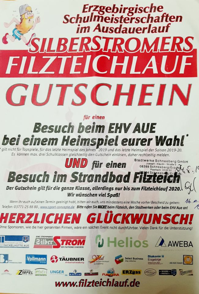 Weitere Gewinne waren einen kostenloser Eintritt ins Strandbad am Filzteich und ein Spiel beim EHV Aue (Handballmanschaft aus der 2. Bundesliga) für die gesamte Klasse.