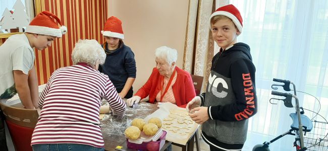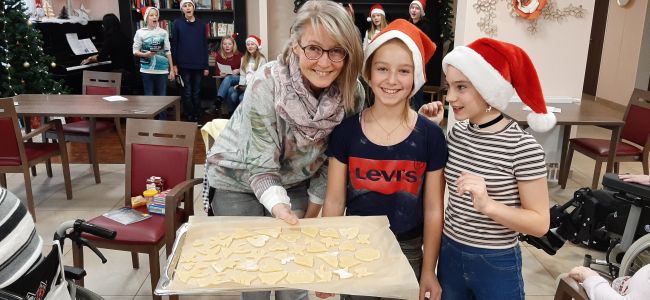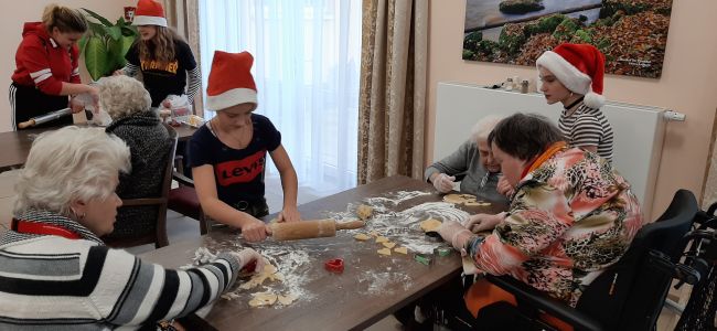 Wir, die Klasse 6a, haben genau das am 3.12.2019 in der Seniorenresidenz Rodewisch praktisch umgesetzt und dort leckere Plätzchen mit den Bewohnern gebacken. Es gab viel Spaß beim gemeinsamen Teigausrollen, Ausstechen mit den Formen und nach dem Backen beim Verzieren. Berührungsängste gab es keine, höchstens mit Mehl „verzierte“ Kleidung und Gesichter.