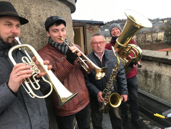 Am 15.12.2019 erfreute die „Blaskapelle Röthenbach“ vom Turm des Pestalozzigymnasiums die Stadt Rodewisch mit weihnachtlichen Klängen.