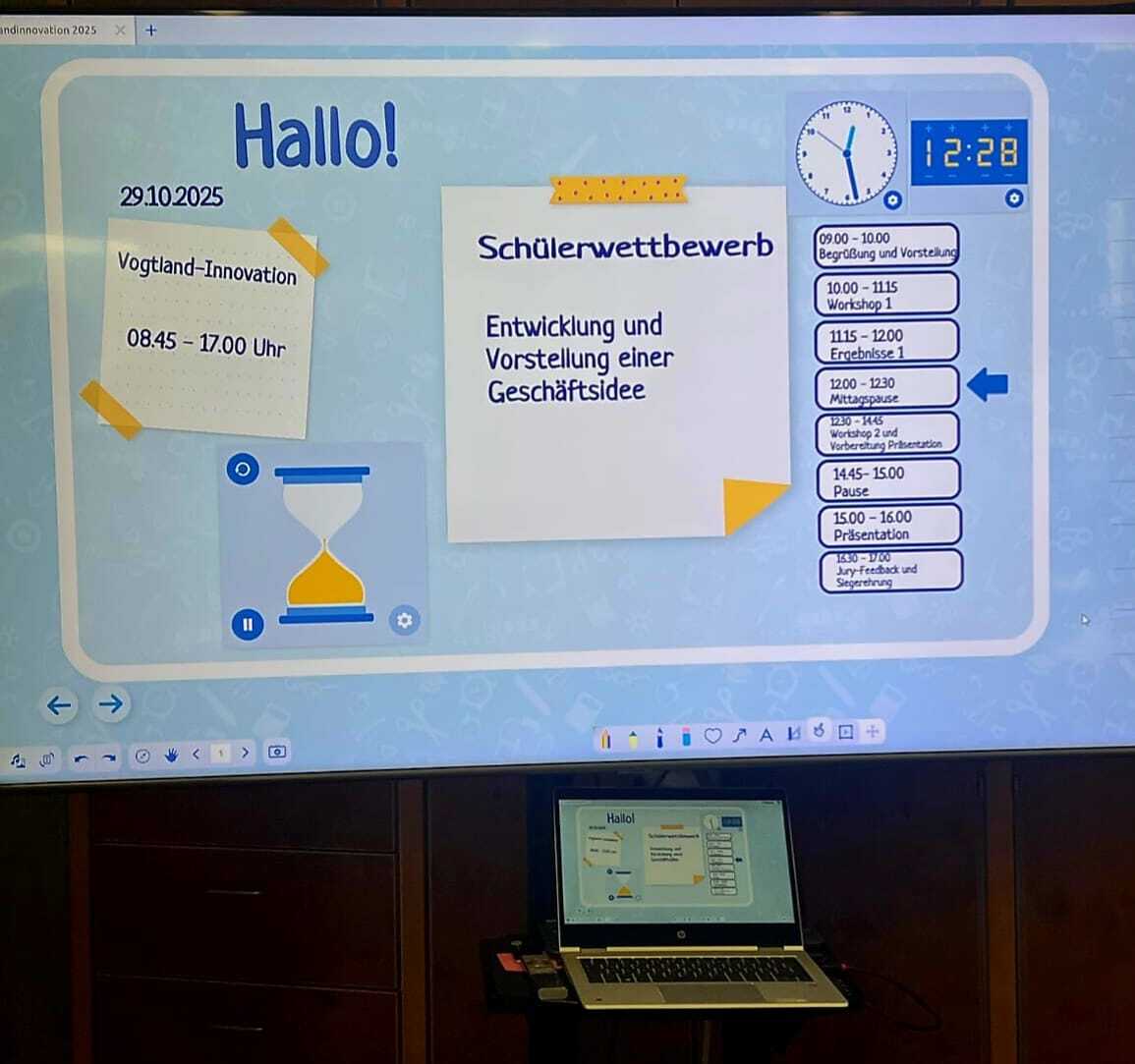 Wir freuen uns sehr, dass am 29.10.2025 sieben Schülerinnen und Schüler der 12. Klasse in Oelsnitz erfolgreich an einem Wettbewerb zur Entwicklung einer Geschäftsidee teilnahmen. Ziel des Wettbewerbs war es, innovative Konzepte zu entwerfen, die aktuelle gesellschaftliche und wirtschaftliche Probleme lösen können.